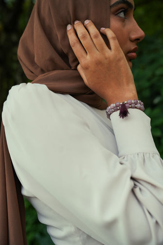 This is a stunner! This rare Madagascar rose quartz is beautifully paired with Swarovski crystal and silver accents. It is elegant and beautiful bracelet that can be used as a 33 bead tasbeeh/misbaha. Elevate your outfit or keep it handy next to your prayer mat.
